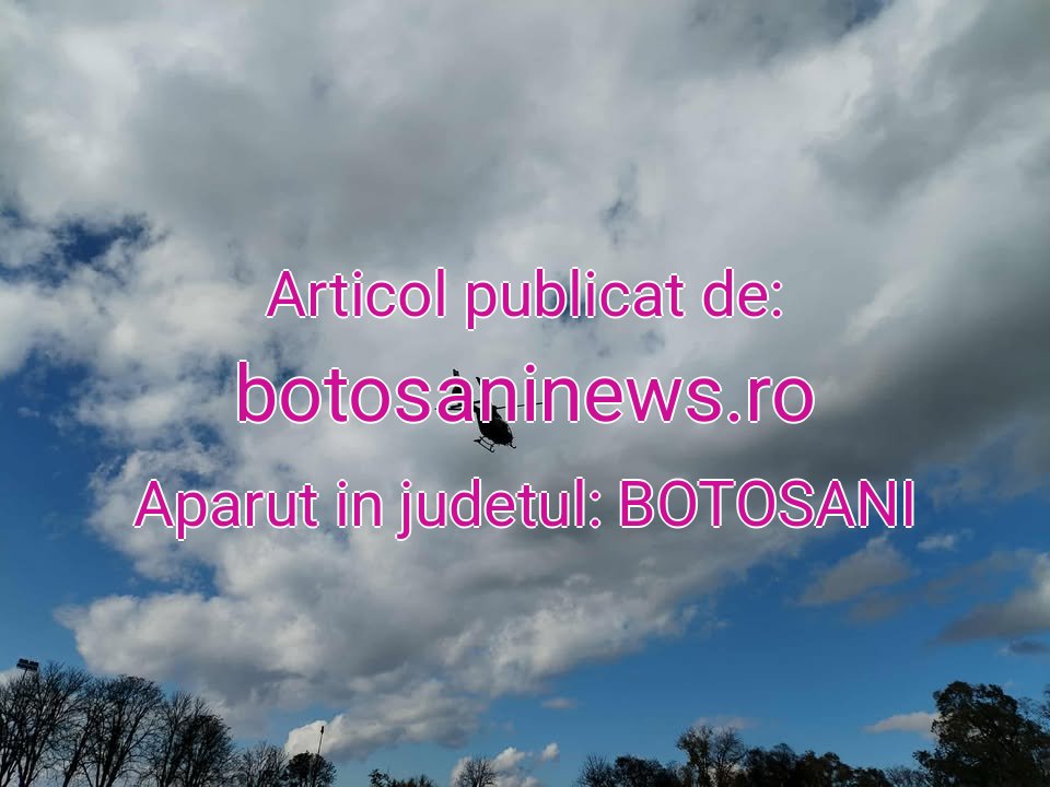 Elicopterul SMURD a fost chemat și vineri de urgență la Botoșani pentru a prelua un bărbat în stare gravă. Este vorba despre un botoșănean de 58 de ani, cu afecțiuni cardiace.