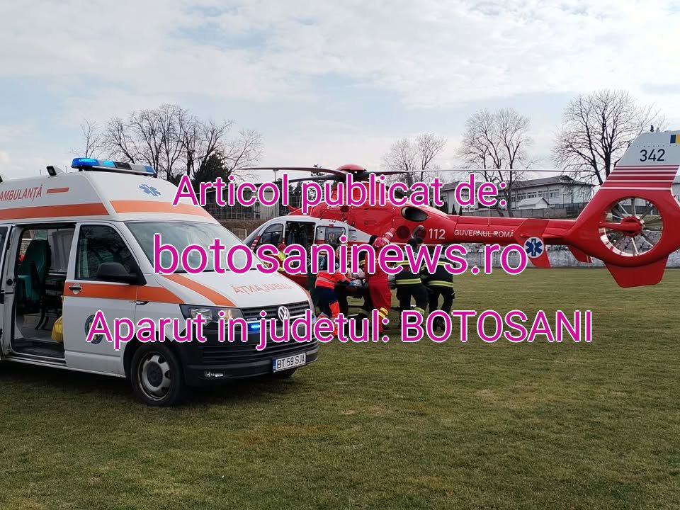 Un tânăr de 21 de ani, din județul Botoșani, a fost rănit grav într-un accident rutier, lângă Darabani. Medicii l-au diagnosticat cu fractura de bazin și traumatism craniao facial, iar din cauza stării grave în care se afla au decis să îl transfere la Iași pe cale aeriană.
