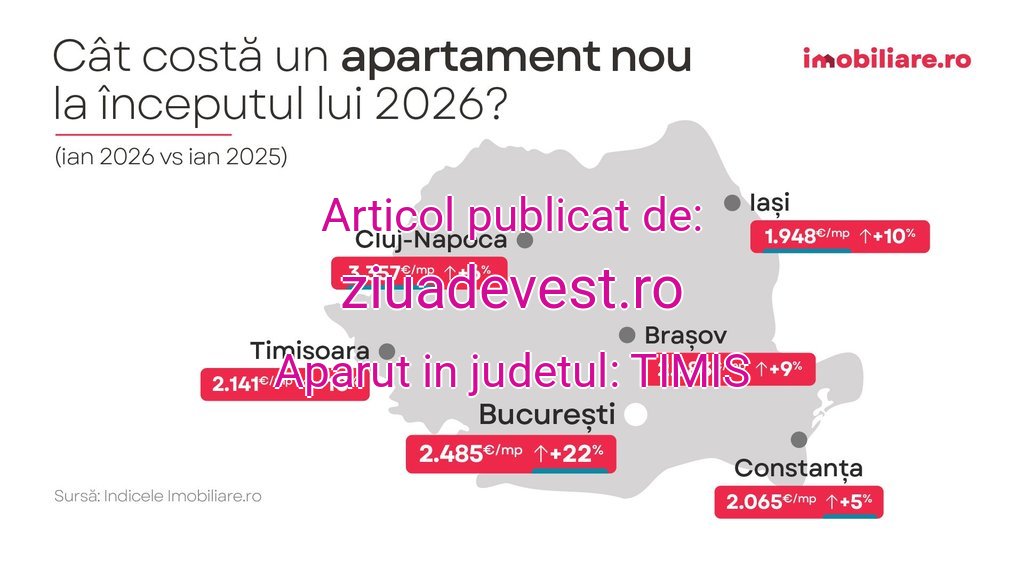 Prețul mediu solicitat pentru apartamentele din blocuri finalizate recent în Brașov a ajuns la 2.683 euro/mp util, potrivit Indicelui Imobiliare.ro. În Timișoara, cumpărătorii achită în medie 2.141 euro/mp util pentru un apartament nou, iar în Constanța puțin peste 2.000 euro/mp util. Singurul oraș în care prețurile se mențin sub acest prag, chiar și după un avans cu 10% pe parcursul anului trecut, este Iași.