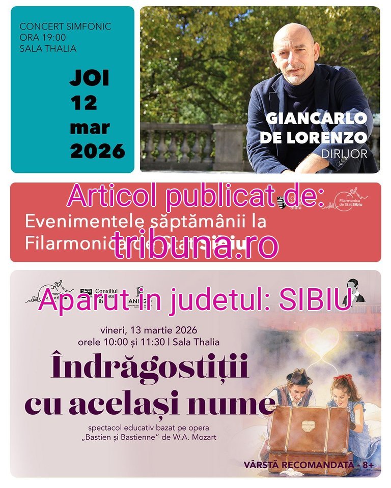 Joi, 12 martie 2026 , de la ora 19:00, la Sala Thalia, Orchestra Filarmonicii de Stat Sibiu va fi condusă de dirijorul italian Giancarlo De Lorenzo , invitat pe scena sibiană cu un program construit în jurul expresivității romantice și al muzicii de film. Concertul debutează cu „Valse triste” de Jean Sibelius, una dintre cele mai cunoscute pagini ale compozitorului finlandez, urmată de două lucrări ale celebrului compozitor italian Nino Rota, autor al unor memorabile partituri pentru filmele lui Federico Fellini: „Sinfonia Sopra una canzone d’amore” și Suita simfonică din muzica filmului „La strada”.