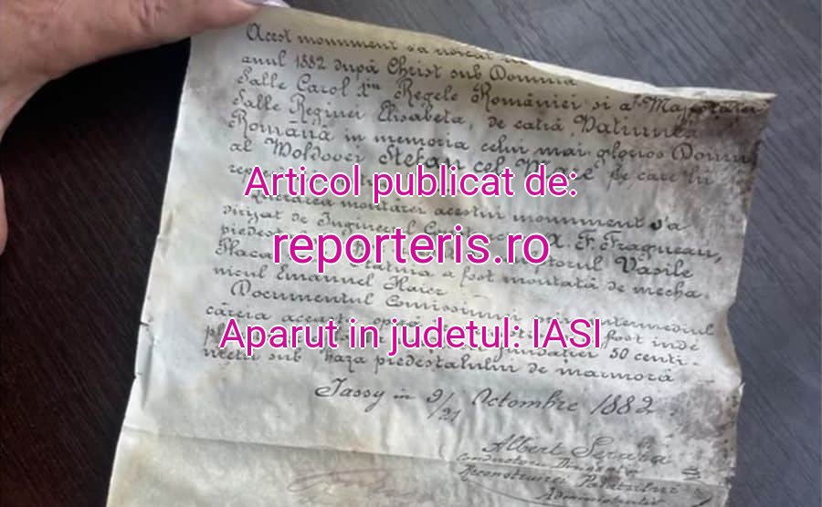 Documentul conține semnături greu de descifrat și menționează faptul că actul comisiei care a realizat monumentul se află la mijlocul fundației, la 50 de centimetri sub baza piedestalului de marmură.„Șansele ca acest act să fie scos la lumină acum sunt mici. Pentru asta trebuie desfăcuți soclul, dar nu avem nici deșurubarea asta, deci rămâne acolo până se desface soclul”, a precizat expertul.