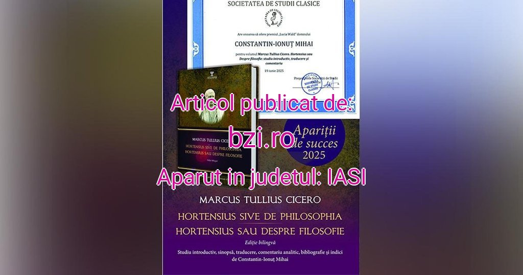 „𝐏𝐑𝐄𝐌𝐈𝐔𝐋 „𝐋𝐔𝐂𝐈𝐀 𝐖𝐀𝐋𝐃” al 𝐒𝐨𝐜𝐢𝐞𝐭𝐚̆𝐭̦𝐢𝐢 𝐝𝐞 𝐒𝐭𝐮𝐝𝐢𝐢 𝐂𝐥𝐚𝐬𝐢𝐜𝐞 𝐝𝐢𝐧 𝐑𝐨𝐦𝐚̂𝐧𝐢𝐚, acordat cercetătorului 𝐂𝐨𝐧𝐬𝐭𝐚𝐧𝐭𝐢𝐧-𝐈𝐨𝐧𝐮𝐭̦ 𝐌𝐢𝐡𝐚𝐢 pentru ediția bilingvă a dialogului 𝐻𝑜𝑟𝑡𝑒𝑛𝑠𝑖𝑢𝑠 𝑠𝑖𝑣𝑒 𝐷𝑒 𝑝ℎ𝑖𝑙𝑜𝑠𝑜𝑝ℎ𝑖𝑎 / 𝐻𝑜𝑟𝑡𝑒𝑛𝑠𝑖𝑢𝑠 𝑠𝑎𝑢 𝐷𝑒𝑠𝑝𝑟𝑒 𝑓𝑖𝑙𝑜𝑠𝑜𝑓𝑖𝑒, aparținând unuia din cei mai străluciți oratori latini, 𝐌𝐚𝐫𝐜𝐮𝐬 𝐓𝐮𝐥𝐥𝐢𝐮𝐬 𝐂𝐢𝐜𝐞𝐫𝐨.