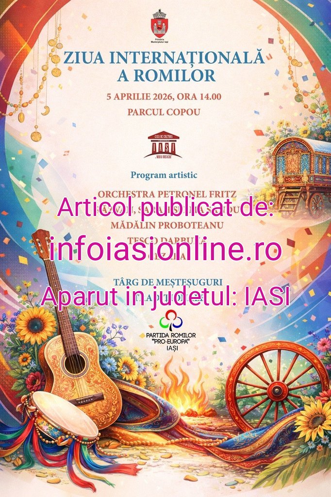 Primăria Iași: Ritm, Tradiție și Culoare: Sărbătorim Ziua Internațională a Romilor în Copou infoiasionline.ro 4 aprilie 2026 Acțiune FacebookXPinterestWhatsApp Intrarea este liberă! Veniți să descoperiți farmecul unei culturi fascinante, într-o după-amiază de duminică memorabilă! Sursa: https://infoiasionline.ro/primaria-iasi-ritm-traditie-si-culoare-sarbatorim-ziua-internationala-a-romilor-in-copou/153156/ Acțiune FacebookXPinterestWhatsApp Ultimă oră ziaruldeiasi.ro Ziua Internațională a Morcovului Robo Stiri - 4 aprilie 2026 ziaruldeiasi.ro Suedia a reținut al treilea petrolier al Rusiei într-o lună. Lăsa o dâră de petrol de 12 km Robo Stiri - 4 aprilie 2026 bzi.ro Sâmbăta lui Lazăr. Ce nu trebuie să faci în sâmbăta dinaintea FLORIILOR! Robo Stiri - 4 aprilie 2026 viata-libera.ro Remember. Simion Stoilow, creatorul școlii românești de analiză complexă Robo Stiri - 4 aprilie 2026 Același autor infoiasionline.ro Municipalitatea va interzice „păcănelele” după data de 16 aprilie 2026 4 aprilie 2026 infoiasionline.ro Licitație pentru locuri de parcare în zona Aleea Rozelor 4 aprilie 2026 infoiasionline.ro O nouă ediție a campaniei „De la depou la padoc: Să umplem cămara cățeilor” 4 aprilie 2026 infoiasionline.ro Tramvaiul lui Iepurilă revine pe șinele Iașului și vă așteaptă în Rond Târgu Cucu 3 aprilie 2026