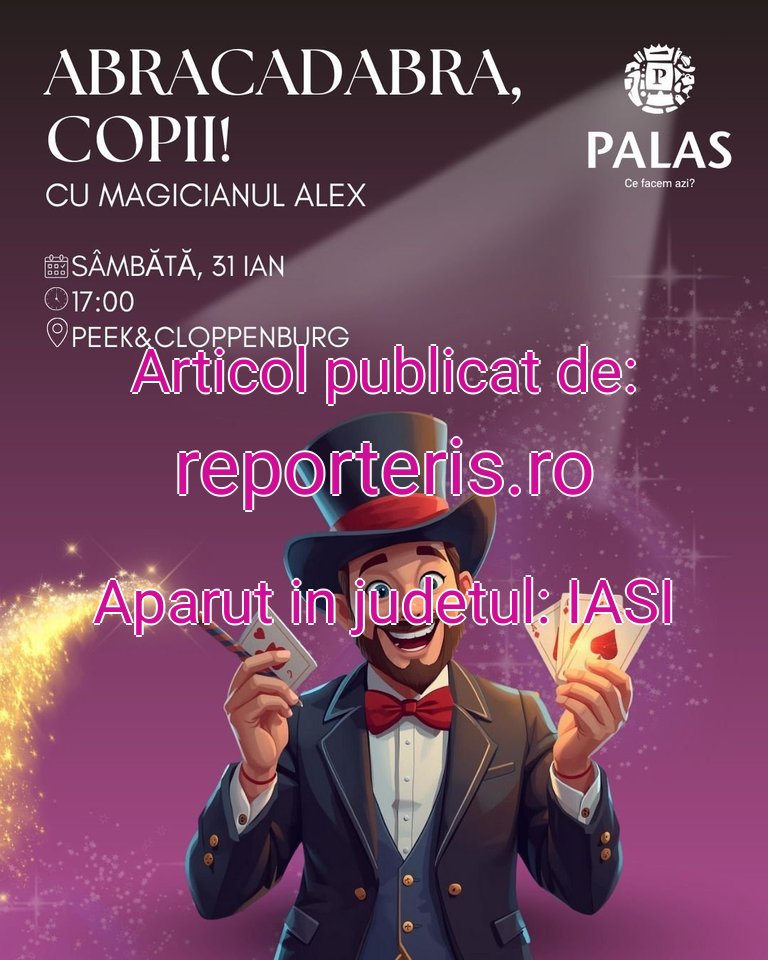 âmbăta aceasta, între orele17:00 – 19:00 , în piațetaPeek & Cloppenburg , copiii se vor întâlni cuAlex Magicianul și Stitch într-un spectacol care promite râsete și multe momente de magie! Cei prezenți vor putea descoperi trucuri magice, se vor întâlni cu îndrăgitulși se vor bucura de un show interactiv.Accesul este liber , iar toți cei dornici de distracție sunt așteptați să participe.